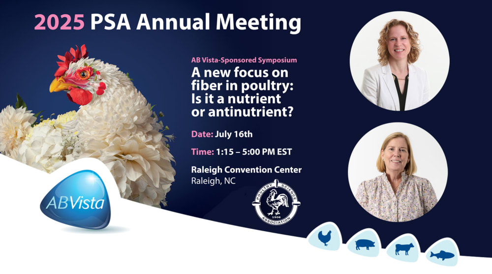 Published Wednesday, 25th June 2025To explore the evolving role of fiber in poultry nutrition, AB Vista will host a dedicated symposium titled “A New Focus on Fiber in Poultry: Is it a Nutrient or Antinutrient?” at the upcoming 2025 Poultry Science Association (PSA) Annual Meeting in Raleigh, North Carolina. Taking place on July 16, this event will bring together industry-leading researchers and nutrition experts to examine the latest science and practical implications of fiber inclusion in poultry diets.
