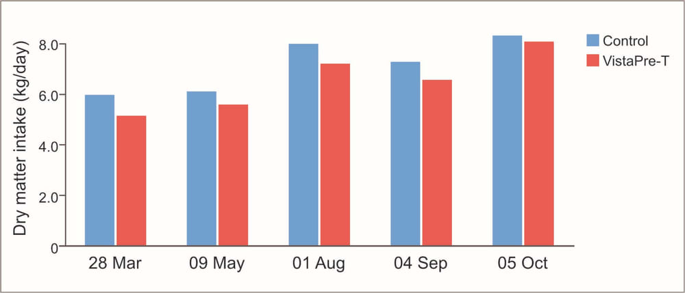 Figure 2 - Comparison of heifer feed intake with or without VistaPre-T pre-treatment