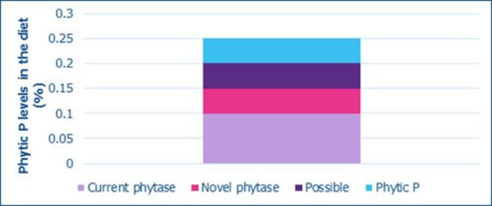 Traditionally, first generation phytases were applied to release 0.1 phosphorus from phytic P. The graph clearly shows that with this approach a lot of phytic P is left unavailable in the diet therefore missing out on its inherent value.
