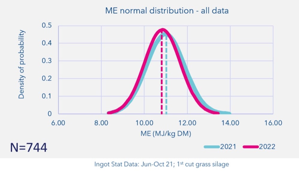 Figure 1. Metabolizable Energy (ME) content as a percentage of dry matter, comparison between 2021 and 2022