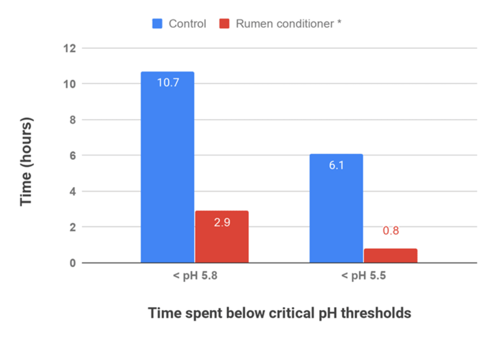 Figure 1 – Effect of slow-release rumen conditioner on rumen pH (* Acid Buf)