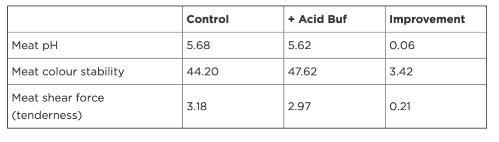 “Combined with faster growth that produces a carcass better matched to market requirements, the net result is that Acid Buf can significantly improve the overall quality of meat produced. And that’s good for the producer, processor, retailer and consumer.”