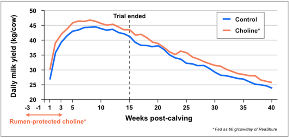 Figure 3 - Effect of ReaShure precision-release choline on lactation yield (Source: Univ. of Florida)